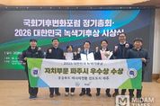 미담타임스 김준완 기자 | 파주시는 2월 25일 여의도 국회 국회의원회관에서 열린 ‘2026 대한민국 녹색기후상’ 시상식에서 자치부문 우수상을 수상했다. 대한민국 녹색기후상은 국회기후변화포럼이 주관하는 국내 대표 기후·에너지 분야 종합 시상으로, 기후변화 대응과 에너지 전환 실현에 기여한 지방정부, 공공기관, 기업, 시민단체 및 개인을 선정해 시상한다. 국회기후변화포럼에 따르면 2025년 12월 29일부터 2026년 1월 30일까지 총 7개 부문에 걸쳐 공모를 진행했으며, 자치부문에는 31개 지방정부가 응모했다. 예심과 본심을 거친 심사 결과, 파주시가 최종 수상기관으로 선정됐다. 이번 수상은 ▲국공유지를 활용한 공공 재생에너지 직접 전력구매계약(PPA) ▲분산에너지 특화지역 추진 ▲시민·소상공인·어린이를 대상으로 한 알이100(RE100) 교육 및 자문·상담 ▲전국 최초 알이100(RE100) 전담조직 및 조례 제정 등 ‘파주형 알이100(RE100)’ 정책이 종합적으로 인정받은 결과다. 파주시 관계자는 “이번 수상은 공공 재생에너지 직접 전력구매계약(PPA)과 기업 알이100(RE100) 대응