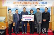 미담타임스 김교환 기자 | 창원특례시는 16일 ㈜마이비가 사회공헌사업의 일환으로 저소득층 청소년의 교통비 부담 완화를 위해 교통카드 10만 원권 200장, 총 2,000만 원 상당을 기탁했다고 밝혔다. 이날 시청 접견실에서 열린 기탁식에는 장금용 창원특례시장 권한대행, 손민수 ㈜마이비 대표이사가 참석했다. 창원시와 ㈜마이비는 2021년 ‘저소득층 청소년 교통비 지원 사회공헌사업’ 협약을 체결한 이후 올해로 5년째 사회적 가치 실현과 나눔을 실천해 오고 있다. 이번에 기탁된 교통카드는 경남사회복지공동모금회를 통해 관내 저소득층 청소년 200명에게 전달될 예정이다. 시는 ㈜마이비와 협력해 교통카드 통합시스템 구축 및 운영 관리, 비접촉식(Tagless) 요금결제 시스템 구축 등 다양한 대중교통 혁신 사업을 추진하며 시민 편의 증진과 교통서비스 고도화에 힘써오고 있다. 이러한 협력 사업은 지속 가능한 교통 환경 조성에 기여하고 있으며, 이번 기탁을 통해 지역사회와의 협력 또한 한층 강화될 것으로 기대된다. 장금용 창원특례시장 권한대행은 “지속적인 나눔을 통해 지역 청소년들을 지