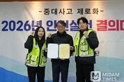 미담타임스 김교환 기자 | 대구공공시설관리공단은 1월 27일 ‘중대재해 ZERO’와 ‘유해·위험요인 100% 개선 조치 실현’을 목표로 ‘2026년 안전실천 결의대회’를 개최했다. 이번 결의대회는 중대재해처벌법 시행 4년을 맞아 안전관리의 실효성을 높이고, 현장 중심의 예방 활동을 강화하기 위해 마련됐으며, 공단 임원을 비롯해 노동조합 위원장, 전 부서장, 안전보건업무 담당자 등 100여 명이 참석했다. 이날 행사는 ▲2025년 안전관리 최우수사업장 포상 수여식 ▲안전보건지킴이 결의문 낭독 ▲중대재해 예방을 위한 안전실천 퍼포먼스 순으로 진행됐다. 참석자들은 각 프로그램을 통해 안전의 중요성에 대한 공감대를 형성하고, 중대재해 예방을 위한 실천 의지를 다졌다. 특히 안전보건지킴이 결의문에는 ▲사업장 내 유해‧위험요인 선제적 발굴 및 개선 ▲형식이 아닌 실질적인 현장 개선 중심의 안전활동 추진 ▲일상 속에서 체감할 수 있는 살아있는 안전문화 정착 등의 내용이 담겼다. 공단은 이를 통해 단 한 건의 중대재해도 용납하지 않겠다는 강력한 의지를 공식적으로 선언했다. 문기봉 대구공
