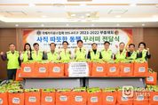 미담타임스 남혜영 기자 | 부산 동래구는 지난 23일 국제라이온스협회 355-A(부산)지구 2021-2022 부총재회(회장 맹성재)가 사직종합사회복지관에 동래구 취약계층을 위한 400만 원 상당의 ‘사직 따뜻한 동행 꾸러미’ 80상자를 기탁했다고 밝혔다. 이번에 전달된 ‘사직 따뜻한 동행 꾸러미’는 2021-2022 부총재회 회원들이 어려운 이웃들의 생활에 실질적인 도움이 되기를 바라는 마음으로 샴푸, 치약, 주방세제 등 생필품을 손수 가방에 담아 제작한 것이다. 맹성재 회장은 “지역의 어려운 이웃들과 함께하겠다는 뜻을 담아 준비했다”라며 “앞으로도 꾸준한 나눔과 봉사로 지역사회에 보탬이 되겠다”라고 전했다. 장준용 동래구청장은 “지역을 위해 꾸준히 나눔과 봉사를 실천해 주시는 국제라이온스협회 355-A(부산) 지구 2021-2022 부총재회에 깊이 감사드린다”라며 “이러한 따뜻한 손길이 지역사회에 널리 퍼져 모두가 함께 살아가는 동래를 만드는 데 큰 힘이 되고 있다”라고 말했다. 한편, 국제라이온스협회 355-A(부산) 지구 2021-2022 부총재회는 무료 급식소 성금 지원과 배식 봉사, 온천3
