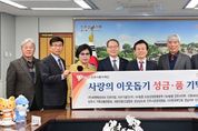 미담타임스 김교환 기자 | 진주시복지재단(이사장 이성갑)은 15일 진주시청 기업인의 방에서 지역사회 기업 ·기관·단체의 어려운 이웃돕기 성금품 기탁식을 가졌다. ㈜이번 기탁식에서 ㈜씨엔텍코리아 진주지점(대표 김영연, 제정열)에서 성금 2,000만 원을, 이수기술단㈜(대표 황국주)에서 성금 2,000만 원, NH 농협 도농상생본부와 진주시지부(지부장 이태용)에서 백미 10kg 375포(환가액 1,200만 원 상당)를, 신평새마을금고(이사장 하성식)에서 성금 500만 원, 진주시기독교총연합회(회장 박형호)에서 성금 500만 원, 대한전문건설협회 경상남도회 진주시운영위원회(위원장 박동식)에서 성금 500만 원, (사)한국부인회 경남지부 진주지회(회장 신부연)에서 성금 200만 원을 지역사회 저소득층 및 장애인 복지 지원을 위해 기탁했다. 이날 기탁식에 참석한 기업 ·기관·단체 관계자는 “지역사회 소외된 이웃에게 조금이나마 도움이 되길 바라며, 앞으로도 지역사회를 위한 나눔 활동에 적극 동참하겠다”고 밝혔다. 조규일 진주시장은 “어려운 시기에 따뜻한 나눔을 실천해 주셔서 감사드린다” 며 “기탁해 주신 성금은 소외된 이