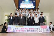 미담타임스 김교환 기자 | 김해시는 지난 15일 제106회 전국체육대회에 출전하는 시청팀 소속 선수단을 초청해 격려했다고 16일 밝혔다. 이 자리에는 하키단 24명, 역도단 5명 총 29명이 참석했으며 두 종목 모두 경남 대표로 체전에 참가한다. 홍태용 시장은 “이번 전국체육대회는 김해시 체육이 한 단계 더 성장할 수 있는 뜻깊은 무대”라며 “56만 김해시민이 한마음 한뜻으로 시청 선수단을 응원하겠다”고 말했다. 이어 “대회가 끝난 뒤에도 시민들과 함께 지역 체육의 성장과 직장운동경기부의 사회적 가치 실현을 이어가겠다”고 덧붙였다. 제106회 전국체전은 오는 17~23일 부산광역시 82개 경기장에서 열린다. 전통의 하키 강호 김해시청 하키단은 최근 2025 한국대학·실업연맹회장배 하키대회와 제39회 대통령기 전국하키대회를 모두 우승하며 절정의 감각을 끌어올리고 있으며 이달 18일 부산 강서구 강서하키경기장에서 조선대와 전국체전 첫 경기를 치른다. 신흥 명문 역도단은 각종 대회에서 메달을 휩쓸고 있으며 20일 부산 남구 국민체육센터에서 박선영 선수(여자 59kg급)가 출전한