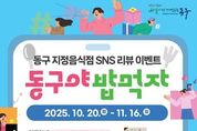 미담타임스 김교환 기자 | 대구 동구청은 지정음식점 홍보와 외식산업 활성화를 위해 20일부터 11월 16일까지 4주간 ‘동구 지정음식점 홍보 SNS 인증샷 & 리뷰 이벤트’를 실시한다. 전 국민 누구나 참여 할 수 있는 이번 이벤트는 대구 동구맛집 홈페이지에서 이벤트 참여 식당을 확인 후 이용 한 뒤 리뷰를 등록하고 인증하면 된다. 리뷰 등록은 네이버 MY 플레이스 영수증 리뷰 또는 인스타그램에 음식사진과 함께 해시태그 3종(#업소명#대구동구지정음식점#동구맛집맛있어) 게시 2가지 방법으로 할 수 있으며, 이벤트 참여는 대구 동구맛집 홈페이지에서 해당 리뷰를 인증하면 된다. 참여자 중 추첨을 통해 매주 화요일 25명씩 총 100명의 당첨자를 선정해 ‘동구 맛집 명성을 담은 밀키트’ 10선 중 1개와 모바일 커피쿠폰(스타벅스)을 경품으로 증정한다. 윤석준 동구청장은 “이번 이벤트를 통해 동구 관내 다양한 지정음식점을 홍보하여 많은 분들이 동구의 맛을 즐기고 이를 통해 우리 지역 먹거리의 우수성을 널리 알리고 지역경제 활성화에 도움이 되길 바란다”고 말했다.