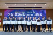 미담타임스 정인화 기자 | 국내외 기업 투자 유치를 핵심 과제로 추진 중인 충남도가 이번엔 14개 기업으로부터 5000억 원 이상의 투자를 이끌어내며 충남의 지속 가능한 미래 발전 발판을 다졌다. 김태흠 지사는 26일 도청 대회의실에서 김석필 천안시장 권한대행 등 6개 시군 단체장 또는 부단체장, 이동주 성창오토텍 대표이사 등 14개 기업 대표와 투자협약을 체결했다. 협약에 따르면, 14개 기업은 2029년까지 6개 시군 산업단지 등 50만 64㎡의 부지에 총 5090억 원을 투자해 생산시설을 신·증설하거나 이전한다. 이들 기업이 계획대로 가동할 경우 신규 고용 창출 인원은 526명으로 예상된다. 천안 북부BIT일반산단에는 4개 기업이 생산시설을 신·증설한다. 자동차용 부품업체인 성창오토텍이 2만 3225㎡부지에 542억 원을 투자해 공장을 새롭게 만든다. 또 반도체·PCB 표면 처리 장비 전문업체인 하이쎄미코가 132억 원을 투자해 6311㎡부지에 공장을 신설하며, 산업용 로봇 제조업체 아라는 100억 원을 투자해 1100㎡부지에 생산시설을 확장한다. 수입 과
