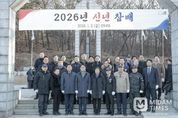 미담타임스 정주환 기자 | 임병택 시흥시장은 병오년 새해를 맞아 1월 2일 오전, 시흥시 논곡동에 있는 현충탑을 찾아 신년 참배로 새해 첫 일정을 시작했다. 이번 신년 참배에는 임 시장을 비롯해 오인열 시흥시의회 의장, 관내 보훈단체 등 70여 명이 참석했다. 임 시장은 참석자들과 현충탑에서 헌화와 분향, 묵념을 함께하며 순국선열과 호국영령의 숭고한 뜻을 기렸다. 참배 이후 시청 늠내홀에서 열린 시무식에 참가한 임 시장은 시의 모든 구성원이 한마음 한뜻으로 서로 소통하고 화합하며 ‘대한민국 대표도시, K-시흥시’를 함께 실현해 나갈 것을 다짐했다. 임병택 시흥시장은 시무식에서 “60만 시민의 평범한 행복을 향해 흔들림 없는 시정을 추진할 것”이라며 “시민 행복과 시흥 발전을 위해 힘차게 나아가자”라고 말했다.