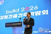 미담타임스 정인화 기자 | 김진태 강원특별자치도지사는 ‘2026 강원건설건축박람회’ 개막식에서 최근 불안한 중동 정세에 대응해 도내 건설‧건축 기업 지원을 위한 특별 대책 마련을 지시했다고 밝혔다. 2026 강원건설건축박람회는 3월 25일~27일까지 3일간 춘천 봄내체육관에서 열리며 도와 춘천시, 강원건설단체연합회, 강원일보사가 공동주최한다. 이번 박람회에는 71개 업체, 92개 부스가 참여해 역대 최대 규모를 기록했으며, 지역 건설사‧설계사‧자재 생산업체의 전시와 함께 건설협회 상담부스도 운영된다. 이 자리에서 김진태 지사는 “강원건설건축박람회가 해마다 규모를 키우며 성황을 이루고 있다”며, “참여 기업들이 실제로 체감할 수 있는 성과를 내고 있는 점이 무엇보다 의미 있다”고 말했다. 이어 “박람회 참가 기업들의 매출이 연간 약 12% 성장하는 등 긍정적인 효과가 나타나고 있다”며, “어려운 여건 속에서도 도내 업체들이 더 많은 공사를 수주하고 성장할 수 있도록 조기집행 등 지원을 아끼지 않겠다”고 밝혔다. 특히 “최근 중동 정세 불안으로 원자재 가격 상승과 물류 부담이 확대되며