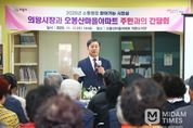 미담타임스 정주환 기자 | 의왕시는 11월 12일 오봉산마을 아파트 작은도서관에서 ‘찾아가는 시장실’을 열고 아파트 주민들과 함께 시정 현안과 생활 불편사항에 대해 소통하는 시간을 가졌다. 이번 행사는 주민 50여 명이 참석한 가운데 진행됐으며, 이 자리에서 김성제 시장은 2025년 시정 현안을 설명하고 아파트 주민들의 건의 사항에 대해 적극적으로 답변하는 등 참석자들의 큰 호응을 얻었다. 아울러, 이날 주민들은 ▲안양천 정비 현황 ▲의왕~봉담간 고속도로 소음방지벽 공사 일정 ▲아파트 인근 산책로·공원·도로 정비 상황 ▲배정 초등학교 통학 문제 등 실생활과 밀접한 다양한 사안을 문의하고 건의했다. 김성제 시장은 “생활 현장에서 시민들의 목소리를 직접 듣고, 해결 방안을 함께 고민하는 것이 진정한 소통행정”이라며, “건의된 사항은 면밀히 검토해 시민들의 불편 사항을 신속히 해결하겠다”고 말했다. ‘찾아가는 시장실’은 김성제 시장이 직접 시민·단체 등을 찾아 민의를 청취하는 소통행정이다. 김 시장은 오는 ▲11월 24, 인덕원자이에스케이뷰아파트 ▲11월 27일, 의왕시 체육인 ▲12월 4일, 대방디에