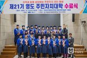 미담타임스 김교환 기자 | 부산 영도구는 지난 12월 10일 한국해양대학교 해양과학기술관에서 제21기 영도 주민자치대학 수료식을 개최했다. 이날 수료식에는 영도 주민자치대학 학장인 김기재 영도구청장을 비롯한 초청 내빈과 지역 주민 등 60여 명이 참석한 가운데, 제21기 교육생 30명의 수료를 축하하는 뜻깊은 시간이 마련됐다. 주민자치대학은 지역 주민의 자치 역량 강화와 공동체 의식 함양을 목표로 운영되고 있는 교육 프로그램으로, 이번 기수는 지난 10월 22일 개강해 8주간 진행됐다. 교육생들은 주민자치 리더십, 주민참여예산 제도 이해, 주민과의 소통 기술, 체험교육 등 다양한 과정을 이수하며 지역 발전에 기여할 주민 리더로서의 역량을 다졌다. 영도구 관계자는 “올해 주민자치대학은 33명 중 30명이 수료하며 성실하게 과정을 마무리한 만큼, 이번 교육을 통해 쌓은 배움이 개인의 성장과 더불어 지역사회 발전의 밑거름이 되길 바란다”고 밝혔다. 한편, 영도구 주민자치대학은 2008년 운영을 시작해 현재 21기까지 총 776명의 수료생을 배출하며 지역 자치 역량 강화에 중요한 역할을 하고