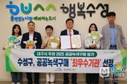 미담타임스 김교환 기자 | 대구 수성구는 대구시 주관 2025 공공녹색제품 구매 평가에서 ‘최우수기관’으로 선정됐다고 밝혔다. 이번 평가는 대구시 9개 구·군을 대상으로 공공녹색제품 구매 실적(합동평가)을 통해 지속 가능한 소비문화 확산과 자원순환 활성화, 탄소중립 달성에 기여한 성과를 평가한 것이다. 수성구는 2024년 한 해 동안 전체 제품 구매액 대비 녹색제품 구매율 70%를 기록해 대구시 자치구 중 가장 높은 수치를 보였다. 이는 지난해 ‘우수기관’ 선정에 이어, 전 부서가 적극적으로 녹색제품을 구매하고 관리 체계를 공고히 한 협업의 성과다. 김대권 수성구청장은 “이번 최우수기관 선정은 수성구가 탄소중립 실현을 향한 확고한 의지를 보여준 성과”라며 “앞으로도 녹색제품 구매를 지속적으로 확대해 환경친화적 행정과 지속 가능한 미래를 선도해 나가겠다”고 말했다.