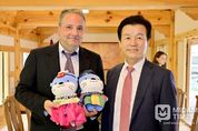 미담타임스 김교환 기자 | 진주시는 지난 3일부터 6일까지(3박 4일) 지난해 진주시와 우호도시 교류의향서를 체결한 프랑스 ‘투레트(Tourrettes)시’의 ‘세바스티앙 모로(Sébastien Moreau)’ 부시장과 관계자들이 진주시를 방문했다고 밝혔다. 이번 방문은 진주시의 대표축제인 남강유등축제의 개최를 축하하고, 주요 문화예술 인프라와 두 도시 간 미술교류 확대 방향을 모색하기 위한 문화관람 및 교류 목적으로 이뤄졌다. 특히 지난 4일에는 조규일 진주시장과 ‘세바스티앙 모로’ 투레트 부시장이 진주성 중영에서 간담회를 가져 관심을 모았다. 이 자리에서 조 시장은 올해 3월 ‘투레트시 바이올렛축제(Fête des Violettes)’에서 4000개의 바이올렛 꽃으로 장식한 진주시의 관광캐릭터 ‘하모’와 진주를 대표하는 ‘유등’을 소개한 것을 비롯해 7월 이성자 화백의 ‘이젤’이 프랑스에서 진주로 안전하게 운송될 수 있도록 노력해준데 대한 감사를 전하고, 지속적인 협력을 약속했다. 이에 세바스티앙 부시장은 이성자 화백 아틀리에의 프랑스 정부 지정 ‘주목할 만한 현대 건축물’ 선정에 따른 현판식에