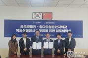 미담타임스 김준완 기자 | 독도박물관은 오는 4월 6일부터 10일까지 칭다오청운한국학교에서‘찾아가는 독도 교육프로그램을 운영한다. 이번 독도 교육 프로그램은 칭다오청운한국학교에 조성 중인‘독도 상설전시실 구축사업’과 연계해 추진되는 것으로, 해외 거주 청소년들에게 독도에 대한 올바른 인식과 역사적 이해를 확산하는 데 목적이 있다. 교육은 초·중·고등학생을 대상으로 하며, 연령과 수준을 고려한 단계별 맞춤형 프로그램으로 운영된다. 초등학생에게는 체험과 참여 중심의 활동을 통해 독도에 대한 흥미와 친근감을 높이고, 중·고등학생에게는 독도의 지리적 가치와 역사적 근거를 체계적으로 이해할 수 있도록 강의형 프로그램을 구성해 사고력과 문제 인식 능력을 함께 기를 수 있도록 했다. 또한 초·중학생을 대상으로 ‘독도 골든벨’을 운영해 학습 내용을 점검하고, 참여형 활동을 통해 교육 효과를 높일 계획이다. 한편, 독도 상설전시실 개관에 앞서 4월 8일에는 독도박물관과 칭다오청운한국학교 간 전시실 운영 및 지속적인 독도 교육 협력을 위한 업무협약(MOU)을 체결하여 앞으로 양 기관은 독도 교육 자료와 콘텐츠를 공유