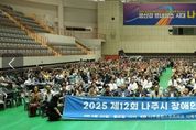 미담타임스 정인화 기자 | 전라남도 나주시가 장애인과 비장애인이 함께 어울리며 소통하는 화합의 장 ‘제12회 나주시 장애인 한마당 큰잔치’를 성황리에 개최했다. 나주시는 최근 종합스포츠파크 다목적체육관에서 나주장애인연합회(회장 송종운) 주관으로 행사를 열고 장애인과 비장애인, 자원봉사자 등 800여 명이 참여한 가운데 기념식, 축하공연, 장기자랑까지 총 2부 순서로 진행했다고 25일 밝혔다. 이번 행사는 모범장애인과 장애인복지 유공자 11명에 대한 표창 수여와 더불어 다채로운 공연과 체험 프로그램으로 의미를 더했다. 기념식은 시각장애인협회 나주시지회 이도전 지회장의 개회선언을 시작으로 모범장애인 및 장애인복지 유공자 표창, 내외빈 축사 등으로 이어졌다. 식전 공연에서는 나주시장애인주간이용센터와 성산원(장애인거주시설) 이용인들이 무대를 꾸며 즐거운 분위기를 더했다. 또한 행사장 부대 프로그램으로 키오스크 체험, 인생사진 촬영, 혈관나이 측정, 원예체험(전남장애인복지관), 메이크업 체험(아띠공방), 장애인 보장구 무상수리(휠앤스) 등이 운영돼 참가자들의 큰 호응을 얻었다. 한편