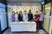 미담타임스 김교환 기자 | 의료법인승연의료재단 삼천포서울병원(병원장 한창섭)은 2025년 11월 14일(금) 제10회 세계 당뇨의 날(World Diabetes Day) 을 맞아 지역주민을 대상으로 무료 혈당 검사 및 당뇨병 관련 건강 상담 행사를 병원 본관 입구에서 실시했다. 국제 당뇨병 연맹과 세계 보건기구가 세계 당뇨의 날 국제 기념일로 지정한 날은 11월 14일이다. 삼천포서울병원은 2016년부터 매년 세계 당뇨의 날을 기념하여 무료 혈당검사와 건강상담 활동을 꾸준히 이어왔으며, 지역사회의 당뇨병 인식 제고와 조기발견에 기여해 왔다. 한창섭 병원장은 “당뇨는 평생 관리가 필요한 질환이지만, 조기진단과 생활습관 개선으로 합병증을 충분히 예방할 수 있다”며 “오늘 무료 검사와 상담을 통해 더 많은 분들이 당뇨 위험을 확인하고 적절한 관리를 시작하시길 바란다”고 말했다. 한편 삼천포서울병원은 2013년부터 전국 최초로 당뇨발전문센터를 개설하여 당뇨발 환자들에게 희망을 선물하고, 더 나은 치료를 위해 혈관중재술, 고압산소, 투석혈관개통술, 상처치료 전담의료진 등 치료메커니즘을 확립하여 전국각지, 해