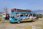 미담타임스 황명수 기자 | 양산시는 낙동강 수변공원인 황산공원을 순환하는 친환경 전기 생태관람차 시범운영을 시작했다고 밝혔다. 이번에 도입된 생태관람차는 양산시 관광캐릭터 ‘뿌용’을 형상화하고 자연과 조화를 고려해 친환경 전기 차량으로 도입했다. 차량 탑승인원은 최대 23명으로 황산공원 중앙에 위치한 캠핑장 옆 문화관광해설사의 집 옆 임시주차장에서 출발해 중간 정차지점 없이 황산육교, 중부광장, 황산 파크골프장, 선착장을 지나 탑승장소로 돌아와 하차한다. 1차 시범운영 기간은 2026년 3월 28일부터 6월 7일까지이며 운영시간은 10시부터 16시(점심시간 12시~13시 제외, 6회, 월요일 정기휴무) 정각 출발, 30분~40분정도 관람할 수 있다. 시범운영 기간 동안 이용요금은 무료이며 시간마다 선착순으로 탑승 가능하고, 금 ․ 토 ․ 일요일에는 1~2회정도 문화해설사가 동반 탑승해 황산공원 및 낙동강에 대한 다양한 이야기를 제공할 예정이다. 양산시는 1차 시범운영 종료 후 이용객 의견을 반영해 콘텐츠 보강 및 시설 개보수를 실시하여 억새 등 가을정취를 느낄 수 있고 국화축제 등과 연