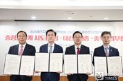 미담타임스 정인화 기자 | ‘2026 태안국제원예치유박람회’ 개막이 25일 앞으로 다가온 가운데, 560만 충청민들이 행사 성공 개최를 위해 힘을 모은다. 김태흠 지사는 31일 도청 상황실에서 이장우 대전시장, 최민호 세종시장, 김영환 충북도지사를 대신해 참석한 이복원 충북도 경제부지사와 ‘태안국제원예치유박람회 성공 개최와 충청권 상생 협력을 위한 업무협약’을 체결했다. 이번 협약은 태안국제원예치유박람회 성공 개최를 위한 충청권 협력 체계 구축, 상호 협력을 통한 충청권 공동 발전과 상생 협력 도모, 국제행사 및 공동 발전 사업 추진 지속 가능한 협력 모델 구축 등을 위해 맺었다. 구체적으로 4개 시도는 △태안국제원예치유박람회 성공 개최 지원 및 충청권 관광·문화예술 협력 체계 구축 △각 시도 공식 온오프라인 홍보 채널을 활용한 박람회 홍보 △각 시도 간 유기적인 협조 체계 구축을 통한 박람회 관광객 유치 지원에 협력하기로 했다. 또 △충청권 기업의 박람회 참여 독려 및 교류·비즈니스 활성화 지원 △향후 국제 행사 및 공동 발전 사업에 대한 공동 협력과 상생 발전 모색 등에도 함께 노력하기로