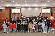 미담타임스 김준완 기자 | 울산 중구의회가 설 명절을 앞두고 관내 어린이집 원생과 학부모, 교직원을 초청, 견학 행사를 마련했다. 중구의회는 11일 중구 병영 도담어린이집 원생과 학부모, 보육교사 등 50여명이 참가한 가운데 중구의회 의정활동 체험행사를 진행했다. 이날 행사에는 박경흠 의장과 김도운 의원이 참석해 의회 홍보영상 시청, 기초의회의 역할과 기능 강의, 의회시설 견학, 본회의장 체험활동, 기념품 전달 등이 펼쳐졌다. 특히 중구를 상징하는 대표 캐릭터인 ‘울산큰애기’가 함께 동행해 어린이집 원생들과 기념촬영을 하며 뜻깊은 시간을 가졌다. 이번 체험활동에는 원생은 물론 학부모도 함께 동행해 평소 생소하게만 느껴졌던 기초의회를 직접 보고, 느껴보는 기회를 마련했다. 중구의회는 지역 어린이집과 초·중·고 학생을 대상으로 지방의회의 기능과 역할을 알리고 풀뿌리민주주의의 중요성을 몸소 체험할 수 있는 기회를 제공하는 견학·체험 교실을 운영중이며 지방자치 교육과 모의의회 등의 프로그램으로 구성돼 있다. 박경흠 의장은 “자라나는 아이들이 본회의장에서 정책과 행정집행의 상징과도