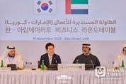 미담타임스 김교환 기자 | 아랍에미리트(UAE)를 국빈 방문한 이재명 대통령은 19일(현지시간) "인공지능 중심의 첨단산업 협력을 통해 미래 성장 동력을 함께 창출하자"고 제시했다. 또 "청정 에너지와 방산 분야 협력을 고도화해 세계 최강국으로 함께 성장할 모멘텀을 확보하자"고도 했다. 이 대통령은 이날 아부다비 소재 한 호텔에서 열린 '한-UAE 비즈니스 라운드 테이블' 행사에 참석해 양국 정부 및 기업의 교류 확대 필요성을 강조하며 이같이 언급했다. 이번 행사는 이 대통령의 UAE 국빈 방문을 계기로 개최된 경제행사로 한국경제인협회, 대한무역투자진흥공사, UAE 대외무역부, 아부다비 상공회의소가 공동 주최했으며, 양국 정부, 기관, 기업 관계자 40여 명이 함께했다. 이 대통령은 기조연설을 통해 "한국과 UAE는 바라카 원전 건설, 아크부대 파견 등으로 서로의 발전을 이끌어오며 진정한 형제의 나라이자 동반자인 라피크(Rafiq)로 거듭나고 있다"라며, "2071년까지 UAE가 세계 최고 국가로 도약하기 위한 최적의 파트너가 한국"임을 강조했다. 아랍어 라피크(Rafiq)는 먼 길을 함께하는 동