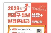 미담타임스 김교환 기자 | 부산 동래구는 청년들의 구직 과정에서 발생하는 경제적 부담을 덜어주기 위해 ‘2026년 동래구 청년 성장+ 면접준비금 지원사업’을 추진한다고 밝혔다. 이번 사업의 접수 기간은 1월 12일부터 12월 10일까지이며, 예산 소진 시 조기 마감된다. 지원 대상은 신청일 기준 3개월 이상 동래구에 거주 중인 18세 이상 39세 이하 미취업(창업) 청년으로, 올해 1월 1일부터 11월 30일까지 부산시 소재 기업의 채용 면접에 응시한 경우 합격 여부와 관계없이 지원받을 수 있다. 지원 금액은 면접 1회당 5만 원이며, 연 최대 2회(최대 10만 원)까지 지급된다. 신청은 동래구청 누리집을 통한 온라인 접수로만 가능하며, 면접준비금 신청서, 주민등록표 초본, 건강보험 자격득실확인서, 사실증명(사업자등록 사실 여부), 채용공고문, 면접확인서 등 증빙서류를 제출해야 한다. 다만, △국민취업지원제도·부산시 디딤돌 카드+ 등 동일·유사 사업 참여자 △공무원·공무직·정부 직접 일자리 면접 응시자 △3개월 미만 단기 아르바이트 면접 응시자 등은 지원 대상에서 제외된다. 장준용 동래