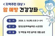 미담타임스 황명수 기자 | 함양군보건소는 2026년‘암 예방의 날(3.21.)’을 맞이하여 오는 3월 10일 지역주민을 대상으로 암 예방과 조기검진의 중요성을 알리기 위한 건강강좌를 개최한다. 이번 건강강좌는 지역주민의 건강증진과 암 예방 인식 향상을 위해 마련됐으며, 암의 주요 발생 원인과 예방을 위한 올바른 생활습관의 중요성 등을 중심으로 진행될 예정이다. 특히 강의는 경상국립의대 강윤식 교수가 강사로 나서 일상생활 속에서 실천할 수 있는 암 예방 수칙과 함께 정기적인 검진을 통해 암을 조기 발견과 치료의 중요성, 국가암검진 참여의 필요성도 함께 안내해 주민들의 이해도를 높일 계획이다. 함양군보건소 관계자는 “암은 생활습관 개선과 정기적인 검진을 통해 충분히 예방하고 조기에 발견할 수 있는 질환”이라며 “이번 건강강좌가 지역주민들이 암 예방의 중요성을 인식하고 건강한 생활습관을 실천하는 계기가 되길 바란다”고 말했다. 한편 이번 건강강좌는 지역주민 누구나 참여할 수 있으며, 자세한 사항은 함양군보건소 건강증진담당으로 문의하면 된다.