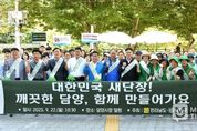 미담타임스 김준완 기자 | 담양군은 22일 담양시장과 하천 주변 일대에서 공무원과 관계기관, 단체 등 100여 명이 참여한 가운데 ‘대한민국 새단장! 내마을 새단장! 캠페인’을 펼쳤다고 밝혔다. 이번 캠페인은 행정안전부가 주관하는 범국민 청결운동의 하나로, 여름철 집중호우로 발생한 쓰레기를 정리하고 추석을 맞아 귀성객과 관광객에게 깨끗한 담양을 알리기 위해 추진됐다. 행사에는 전라남도와 담양군 공무원, 전라남도새마을회, (사)대한야생동물보호협회 전남지회, (사)생태도시담양21협의회, 영산강보전담양군협의회 등 다양한 기관·단체가 참여했다. 참가자들은 담양시장과 주차장 일대에서 1.7톤의 쓰레기를 수거하고, 무단투기 근절을 위한 거리 캠페인도 함께 진행했다. 또한 마을 주민들이 직접 청소에 나서는 ‘내 마을 집중 청소 주간’과 함께 운영하며 주민 참여와 자치 의식 확산에도 기여했다. 정철원 담양군수는 “지역사회 구성원 모두의 작은 손길이 담양의 큰 변화를 만든다”며 “더 쾌적하고 살기 좋은 담양을 만들기 위해 최선을 다하겠다”고 말했다.