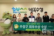 미담타임스 김교환 기자 | 대구 수성구는 지난 27일‘2025 올해의 SNS’ 기초지자체(자치구) 유튜브 부문에서 최우수상을 수상했다고 밝혔다. 지난해에 이어 두 번째 수상으로, 수성구의 온라인 소통 역량이 대외적으로 다시 한 번 인정받았다. 올해로 11회째를 맞은‘올해의 SNS 어워드’는 (사)한국소셜콘텐츠진흥협회가 주최·주관하고 과학기술정보통신부 등이 후원하는 행사로, 사회관계망 서비스(SNS) 매체별 활용 현황을 심사하여 우수한 소셜미디어를 운영하는 기업과 기관을 선정한다. 심사 기준은 활동 및 영향력 지수에 따른 정량평가와 콘텐츠 질, 스토리텔링, 소통성 등 전문가 평가를 종합해 최종 수상자를 결정한다. 수성구는 올해 인플루언서 협업 콘텐츠, 영화 패러디 영상, ‘소다팝 댄스 챌린지’ 영상 등 젊은 층의 관심을 끌 수 있는 기획물이 호평을 받았다. 또한 수성구 캐릭터 ‘뚜비’를 활용한 챌린지와 트렌디한 쇼츠 영상 제작으로 채널의 차별성을 높였다. 단순 구정 정보 전달에서 벗어나 재미 요소를 가미해 지역 소식을 자연스럽게 홍보한 점도 높은 평가를 받았다. 수성구 공식