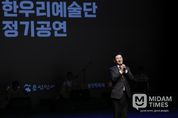 미담타임스 정주환 기자 | 용인특례시는 5일 오후 수지구 용인평생학습관 큰어울마당에서 ‘한우리예술단 정기공연’이 열렸다고 6일 밝혔다. 용인특례시가 후원하고 용인민예총이 주최·주관한 이날 행사는 우리 고유의 가락과 춤을 한자리에서 만날 수 있는 전통 공연으로 꾸며졌고, 이상일 시장은 1시간 40분간 진행된 공연을 끝까지 지켜본 뒤 공연단을 격려했다. 공연은 농악, 민요, 가야금, 검무 등으로 우리 민족 고유의 소리와 정서, 삶의 이야기를 그려내 큰 박수갈채를 받았다. 할미성 농악 보존회는 꽹과리, 장구, 북, 징, 태평소 등의 악기를 활용해 역동적인 농악 판굿을 선보였다. 용인 아리랑 보존회는 청춘가, 태평가, 창부타령 등 흥겨운 경기민요를 열창하며 분위기를 이끌었다. 이어 검무가 남지연씨의 검무공연이 펼져졌다. 앙상블 더 가야금은 대중에게 친숙한 고향의 봄, 꽃타령, 까투리타령 등을 가야금 병창으로 들려주며 국악의 매력을 선사했다. 한우리예술단은 화려한 가락이 돋보이는 설장구로 타악의 진수를 보여줬다. 이상일 시장은 축사에서 “올해로 32회를 맞이