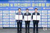 미담타임스 김교환 기자 | 2026대구세계마스터즈육상경기대회 조직위원회는 12월 1일 오전 10시 30분, 대구광역시청 동인청사에서 지역 우량기업인 크레텍 및 아진산업㈜과 공식 후원 협약을 체결했다. 이날 협약식에는 김정기 대구광역시장 권한대행 겸 조직위원장, 최영수 크레텍 대표이사 회장, 서중호 아진산업㈜ 대표이사, 진기훈 조직위 사무총장 등이 참석해 대회의 성공적 운영을 위한 재정적 지원과 상호 협력 의지를 다졌다. 후원에 참여하는 크레텍은 국내 최대 산업공구 기업으로, 지난해 중견기업 최초로 한국서비스대상 명예의 전당에 헌정됐다. 아진산업㈜은 자동차부품 분야에서 혁신과 기술개발을 선도하는 지역 대표 글로벌 중견기업으로, 지난해 4억 불 수출탑을 수상한 바 있다. 이번 협약을 통해 크레텍과 아진산업㈜은 대회가 종료되는 내년 9월 3일까지 공식 후원사 지위를 가지게 되며, 공식 후원사 명칭 사용권, 후원사 마케팅 지원, 개·폐회식 초청, 후원사 전용공간 제공, 감사패 수여 등 다양한 예우를 제공받게 된다. 한편, 세계마스터즈육상경기대회(WMAC)는 35세 이상의 생활체육인이 참가하