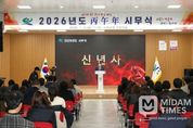 미담타임스 김교환 기자 | 거제시는 2일 시청 대회의실에서 직원 250여 명이 참석한 가운데 2026년 시무식을 열고 본격적인 새해 시정 운영에 들어갔다. 이날 행사는 새해의 시작을 알리는 대북 공연으로 힘차게 막을 열었으며, ‘거제의 하루’영상 시청, 새해 다짐 발표, 신년사 등의 순으로 진행됐다. 홍보실 미디어홍보팀이 직접 한 달간 시민들의 일상을 시간대별로 촬영·편집해 제작한 ‘2026 거제의 하루’ 영상은 각자의 자리에서 치열하게 살아가는 시민들의 삶이 모여 거제의 오늘을 이룬다는 메시지를 담아 직원들의 마음에 잔잔한 울림을 전했다. 이어 병오년을 맞아 말띠 직원 대표로 민생경제과 이소영 주무관이 새해 공직자로서의 다짐을 발표해 선후배 공무원들의 공감과 미소를 자아냈다. 이 주무관은 “행정은 서류나 숫자에 머무르는 것이 아니라 시민 한 분 한 분의 일상과 맞닿아 있다”면서, “시민의 삶을 세심하게 살피는 공직자가 되겠다”는 새해 다짐을 전했다. 변광용 거제시장은 신년사를 통해 “말이 힘차게 달리기 위해서는 속도보다 방향이 중요하다”며, “우리가 나아갈 방향을 분명히 설정하고, 거