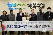 미담타임스 김교환 기자 | 대구 수성구는 지난 28일 6·25전쟁에 참전해 공을 세운 故 우희진 일병의 유가족에게 화랑무공훈장과 증서를 전수했다. 이날 전수식에는 유가족 우성록 씨를 비롯해 김대권 수성구청장, 김인태 무공수훈자회 수성구지회장 등이 참석했다. 이번 전수는 국방부와 육군본부가 추진하는 ‘6·25 무공훈장 찾아주기 사업’의 일환으로, 전쟁 당시 서훈이 결정됐으나 긴박한 전장 상황으로 인해 실물 훈장과 증서를 전달받지 못했던 故 우희진 일병의 화랑무공훈장을 자녀 우성록 님에게 전달한 것이다. 화랑무공훈장은 대한민국의 네 번째 무공훈장으로, 전투에 참여해 높은 공적을 세운 유공자에게 수여하는 훈장이다. 김대권 수성구청장은 “호국 영웅과 그 가족의 헌신을 잊지 않고 기억하는 것이 오늘날 우리가 해야 할 일”이라며 “앞으로도 국가를 위해 헌신하신 국가유공자와 보훈 가족분들을 존중하고 예우하는 보훈 정책을 펼쳐 나가겠다”고 말했다. 한편, ‘6·25전쟁 무공훈장 찾아주기 사업’은 2019년부터 국방부와 육군본부가 추진하고 있는 사업으로, 당시 무공훈장 서훈이 결정됐으나 긴박한 전장 상
