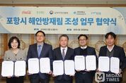 미담타임스 김준완 기자 | 포항시가 기후변화로 심화되는 해안 침식과 복합 재난에 대응하기 위해 ‘숲’을 활용한 자연형 방재 인프라 구축에 나선다. 시는 11일 한국 코카-콜라, 환경재단, 남부지방산림청, 경상북도산림환경연구원과 ‘해안방재림 조성사업 업무협약(MOU)’을 체결하고 민·관 협력체계를 공식화했다. 협약식에는 장상길 포항시장 권한대행을 비롯해 구남주 한국 코카-콜라 상무, 정태용 환경재단 사무총장, 임하수 남부지방산림청장, 박준일 경상북도산림환경연구원장 등 주요 기관 관계자 16명이 참석했다. 이번 협약은 기후변화 대응 및 해양 재해 예방을 위해 글로벌 코카-콜라 재단의 투자를 기반으로, 환경재단과 한국 코카-콜라가 사업 기획·사후 점검, 홍보 등을 지원하고, 산림청과 경상북도산림환경연구원, 포항시가 행정적·기술적 지원과 지역 사회 및 주민 참여 등을 지원하는 민·관 협력사업으로 추진하는 점에서 의미가 크다. 사업 대상지는 북구 흥해읍 용한리 893-1번지 일원 공유수면으로, 후박나무·사철나무·모감주나무·해당화 등 지역 생태에 적합한 수종을 식재해 총 2ha 규모의 해안방재림을 조성한다.