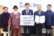 미담타임스 김교환 기자 | 합천군은 지난 8일, 합천군 적중면지 편찬위원회(위원장 김창숙) 에서 합천군청을 방문해 이웃돕기 성금 300만원을 기탁했다고 밝혔다. 이번 기탁식에는 적중면지 편찬위원회 김창숙 위원장을 비롯한 이정희 사무국장, 김정룡 편집국장, 노미경 명예위원장(적중면장)이 참석하여 지역 사회의 복지 향상과 이웃 사랑이 담긴 따뜻한 마음을 나누었다. 김창숙 위원장은 “어려운 이웃과 더불어 함께 살아가는 따뜻한 사회를 만들기 위해 한마음으로 작은 정성을 모았다.”며 “오늘 전달한 작은 나눔이 이웃들에게 희망을 채워줄 수 있기를 바란다.”고 말했다. 김윤철 합천군수는 “추운 날씨에 어려운 이웃들에게 따뜻한 사랑을 나눠주신 적중면지 편찬위원회에 감사드리며, 소중한 성금은 꼭 필요한 이웃에게 전달될 수 있도록 하겠다.”고 감사의 마음을 전했다. 한편, 합천군은 2025년 12월 1일부터 2026년 1월 31일까지 희망2026나눔캠페인 이웃돕기 성금 집중 모금 기간을 운영하고 있으며 기탁받은 성금은 경남사회복지공동모금회를 통해 관내 어려운 이웃에 지원할 계획이다. 성금 기탁을 희망하는 분들은 합천