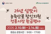 미담타임스 조혜리 기자 | ■ 2026년 설맞이 농축산물 할인지원 전통시장 환급행사 - 2026.2.10.(화)~2.14.(토) (5일간) - 환급소 운영시간 9:00~17:00 ※ 운영시간은 시장상황에 따라 변경될 수 있음 · 행사기간 내, 1인 2만 원 한도 행사기간 내 구매 영수증 금액 합산 가능/ 추가, 중복 수령 불가 - 3만 4000원 이상 구매 시 온누리 상품권 1만 원 환급 - 6만 7000원 이상 구매 시 온누리 상품권 2만 원 환급 예산 소진 또는 부정환급 적발 시 조기종료 ■ 환급절차 ① 국내산 신선 농축산물 구매 후 영수증 수령 ② 점포주가 농축산물 환급 앱에 판매 정보 입력 ③ 구매 영수증, 본인확인 수단(휴대전화) 지참 후, 환급소 방문 ④ 구매한 영수증 및 본인확인 후 상품권 수령 ■ 행사대상 참여 점포에서 국산 신선 농축산물 구매한 고객 ■ 불가항목 · 본인확인 수단(휴대전화) 미지참 시 환급불가 · 국산 신선 농축산물이 아닌 품목 · 행사 미등록 점포 구매 영수증 · 재발행 영수증, 간이 영수증 환급 · 행사 기간 내 구매가 아닌 영수증 · 구매 고객이 아닌 대리인(e