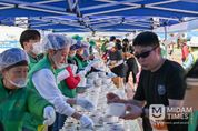 미담타임스 김준완 기자 | 영주시새마을회(회장 우찬우)는 지난 5일 영주소백산마라톤대회가 열린 영주시 국민체육센터 앞에서 참가자와 시민들에게 따뜻한 한 그릇의 온정을 전하는 ‘사랑의 국수 나눔’ 봉사활동을 펼쳤다. 이날 새마을지도자와 부녀회장 50여 명은 이른 아침부터 대회 참가자와 관광객, 시민 등 약 1만여 명에게 나눠줄 잔치국수를 정성껏 준비했다. 특히 회원들은 하루 전부터 깊은 맛을 내기 위한 육수를 끓이며 구슬땀을 흘렸고, 그 정성이 더해진 국수 한 그릇은 행사장을 찾은 이들에게 영주만의 푸근한 인심을 전했다. 이번 봉사활동은 19년째 이어져 온 전통으로, 영주소백산마라톤대회를 찾는 방문객들에게 지역의 따뜻한 이미지를 알리고 공동체 나눔 문화를 확산하는 데 큰 역할을 하고 있다. 우찬우 회장은 “영주를 찾은 많은 분들께 따뜻한 국수 한 그릇으로 푸근한 정을 전할 수 있어 큰 보람을 느낀다”며 “앞으로도 지역사회와 함께하는 나눔 활동을 지속적으로 이어가겠다”고 말했다. 한편, 영주시새마을회는 사랑의 도시락 만들기, 새마을 아카데미, 사랑의 집 고쳐주기, 사랑의 김장 나누기 등 근