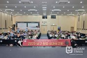 미담타임스 김준완 기자 | 울산 남구는 1일 남구청 6층 대강당에서 남구 창업지원사업 참여기업과 창업 유관기관 관계자 등 70여 명이 참여한 가운데 ‘2025 남구 창업 성과보고회’를 개최했다. 이번 행사는 창업가 릴레이스피치와 성공창업가 토크콘서트, 기업 간의 네트워킹 등 창업청년들에게 실질적으로 도움이 되는 프로그램으로 구성됐다. 특히, 연말을 맞아 참석자들을 대상으로 안 쓰는 물건을 기부받아 지역아동센터에 기부하는 ‘산타 나눔박스’이벤트를 비롯해 기업 제품 전시존, 포토존, 게임존 등 청년 창업가를 위한 다채로운 행사로 진행됐다. 창업가 릴레이스피치는 남구 창업지원사업에 참여 중인 청년 창업가 5명이 순서대로 무대에 올라 릴레이로 각자의 창업 성과를 공유하고 홍보하는 자리로 마련됐으며, (주)스컹크웍스코리아 이현진 대표를 성공창업가 토크콘서트 강사로 초빙해 성공창업에 대한 유용한 정보를 공유했다. 서동욱 남구청장은 "이번 성과보고회가 청년 창업가들의 성장 가능성을 입증하고 더 나은 울산 남구의 창업 생태계를 구축하는데 밑거름이 되길 기원한다”고 전했다.