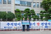미담타임스 김교환 기자 | 부산 부산진구는 ㈜와이씨텍·맑고향기롭게 부산모임에서 9월 30일 부산진구청을 방문하여 추석을 맞이하여 어려운 이웃들에게 전달해 달라며 백미 10kg 2,500포(환가액 1억 원)를 기탁했다고 전했다. 이날 전달식에 참석한 박수관 회장은 “추석에 어려운 이웃들이 소외감을 느끼지 않고 온기와 희망을 가질 수 있도록 이번에 전달되는 쌀이 우리 이웃들에게 도움이 되길 바란다”며 “앞으로도 어려운 이웃을 세심히 살피고, 힘 닿는 데까지 기부와 봉사를 지속적으로 실천하겠다”라고 말했다. 김영욱 구청장은 “매년 명절마다 잊지 않고 어려운 이웃들을 위해 꾸준히 나눔을 실천해 주셔서 감사드린다”라며 “이번에 기부해 주신 쌀 2,500포는 각 동 주민센터 및 관내 사회복지시설을 통해 어려운 이웃들에게 잘 전달하겠다”라고 화답했다.