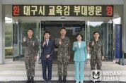 미담타임스 김교환 기자 | 대구시교육청은 9월 25일 민족 고유의 명절인 추석을 맞아 공군 제3171부대를 방문해 국군 장병을 격려하고 위문품과 간식을 전달했다. 이날 방문은 추석 명절을 맞아 따뜻한 사랑의 마음을 나누고, 어려운 여건 속에서도 지역 방위와 시민의 안전을 위해 국방의 의무를 다하고 있는 장병들을 격려하기 위해 이뤄졌다. 강은희 교육감은 “어려운 여건 속에서도 국토방위, 대민지원 등을 위해 헌신하는 국군장병의 노고에 감사를 드린다.”며, “추석을 맞아 국방의 의무를 다하기 위해 노력 중인 장병들에게 조금이나마 위로가 됐으면 한다”고 전했다.