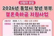 미담타임스 김교환 기자 | 통영시는 청년의 결혼 초기 경제적 부담을 완화하고 안정적인 가정 형성을 지원하기 위해 '2026년 통영시 청년 부부 결혼축하금 지원사업'을 추진하며, 예산 소진 시까지 신청자를 모집한다고 2일 밝혔다. 이번 사업은 2026년 1월 1일 이후 혼인신고를 한 만 18세 이상 45세 이하의 청년 부부를 대상으로 한다. 신청 기준은 혼인신고일 기준 혼인당사자 중 1명 이상이 통영시에 연속 1년 이상 주민등록을 두고 있고, 신청일 현재 부부 모두 통영시에 주민등록을 두고 실제 거주하고 있어야 한다. 외국인 배우자의 경우 외국인등록을 완료하고 합법적인 체류 및 거주 사실이 확인되면 신청이 가능하다. 재혼 부부의 경우 부부 모두 결혼축하금 지원 이력이 없는 경우 전액을 지원하고, 1명만 지원 이력이 있는 경우에는 지원 이력이 없는 배우자 1명에 한해 지원된다. 지원 규모는 총 100가구로, 선정된 가구에는 가구당 총 100만 원 상당의 모바일 통영사랑상품권이 지급된다. 결혼축하금은 2회로 분할 지급되며, 1차로 신청 시 50만 원을 지급하고, 2차는 1차 지급