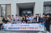 미담타임스 김준완 기자 | 포항시는 ‘제64회 경북도민체육대회’ 사전경기 농구 남자고등부 8강전에서 구미시를 32대 28로 제압하고 4강에 진출했다. 이번 경기는 지난 27일 예천에서 열린 가운데, 포항시는 이번 대회 유력 우승 후보로 꼽히는 구미시를 상대로 경기 초반부터 팽팽한 접전을 펼친 끝에 값진 승리를 거뒀다. 특히 이번 8강전은 포항시 농구 종합우승을 향한 중요한 분수령이 되는 경기로, 선수들은 끝까지 집중력을 유지하며 투혼을 발휘해 의미 있는 결과를 만들어냈다. 이날 경기장에는 포항시 체육산업과와 북구보건소, 송도동, 송도동체육회, 포항시체육회 관계자 등 100여 명이 함께 응원에 나서 선수들에게 큰 힘을 보탰다. 또한 박재관 포항시 자치행정국장이 직접 현장을 찾아 선수단을 격려하며 사기 진작에 힘을 더했다. 서장원 포항시농구협회장은 “선수들이 끝까지 최선을 다해 좋은 결과를 낼 수 있도록 적극 지원하겠다”며 “남은 경기에서도 마지막까지 최선을 다하겠다”고 말했다. 박재관 자치행정국장은 “어려운 경기 속에서도 끝까지 포기하지 않고 값진 승리를 거둔 선수들이 매