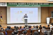 미담타임스 정인화 기자 | 담양군은 지난 22일 담빛농업관 대강당에서 관내 농업인을 대상으로 ‘2026년도 농업 분야 주요 지원사업 지침설명회’를 열고, 농업 분야 보조사업 전반에 대한 추진 방향과 세부 내용을 안내했다. 이번 설명회는 농업인들이 각종 지원사업을 정확히 이해하고 공정하고 투명한 보조금 지원체계 안에서 원활하게 참여할 수 있도록 돕기 위해 마련됐다. 담양군은 지방교부세 감소 등 세수 여건 악화로 일부 사업이 축소·조정되는 상황에서도 내년도 본예산 기준 전체 예산의 18.61퍼센트에 해당하는 1,009억 원을 농업분야 예산으로 편성해 농업 경쟁력 강화를 위한 사업을 지속 추진할 계획이다. 설명회에는 농업유통과와 축산원예과, 농업기술센터, 산림정원과가 참여해 2026년에 추진 예정인 147개 농업 분야 지원사업에 대한 세부 지침을 설명하고, 사업별 추진 절차와 유의사항을 안내했다. 또한 농업 현장의 애로사항과 건의사항을 직접 듣고, 사업 추진과 관련한 궁금증을 해소하는 소통의 시간도 함께 진행됐다. 담양군은 현장에서 제시된 의견을 검토해 향후 농업정책 수립과 사업 운영에