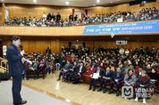 미담타임스 정인화 기자 | 윤병태 나주시장이 병오년 새해를 맞아 주민과 직접 소통하며 지역 현안을 함께 논의하는 ‘주민과의 대화’를 남평읍에서 시작하고 현장 중심의 소통 행정에 본격적으로 나섰다. 나주시는 7일 남평중학교 체육관에서 병오년 새해 첫 주민과의 대화를 개최했다고 밝혔다. 이날 주민과의 대화에는 윤병태 나주시장을 비롯해 주요 공직자와 시의원, 기관 및 사회단체장, 주민대표 등 200여 명이 참석해 지역 현안과 시정 운영 방향을 공유했다. 윤 시장은 2025년도 주요 성과와 2026년도 시정 운영 계획을 설명하고 주민들의 생생한 현장 목소리를 직접 경청하며 지역 발전을 위한 실질적인 해결 방안 모색에 주력했다. 행사는 오시근 남평읍장의 읍정보고를 시작으로 읍면동정과 주요 지역개발사업 공유, 주민 애로사항과 건의사항 청취 및 답변순으로 진행되며 현장 중심 소통 행정을 구현하는 데 초점을 맞췄다. 특히 성장 도시, 명품 교육도시, 청년 행복 도시, 빛가람 혁신도시, 행복한 나주로 구성된 5대 중점 추진 분야와 남평읍 주요 지역개발사업 및 현안 사업을 설명해 주민들의 이해를 도왔다.