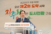미담타임스 정주환 기자 | 오산시가 7일, 세교3신도시 지구지정을 계기로 한 향후 시정 운영 방향과 인구 50만 경제자족도시로 도약하기 위한 중장기 도시 비전을 제시했다. 이권재 오산시장은 이번 발표에서 세교3신도시를 주거 공급에 그치지 않고, 도시 기능과 성장 방향을 함께 고려해 추진하겠다는 구상을 밝혔다. 세교3신도시는 총 131만 평 규모로 3만3천 호의 주택 공급이 예정돼 있으며, 인구 50만 시대를 대비해 단계적으로 조성될 계획이다. 현재 세교3신도시에 반영된 경제자족용지는 9만3천 평 규모로, 오산시는 관계기관과의 협의를 통해 경제자족용지 확대를 추진할 방침이다. 아울러 첨단 테크노밸리와 게임 콘텐츠 산업 클러스터 조성을 통해 AI·반도체·게임 산업이 결합된 경기 남부권 산업 거점 도시로의 성장을 도모한다는 계획이다. 이 시장은 이와 관련해 “세교3신도시는 주거를 늘리는 사업이 아니라, 오산의 미래를 설계하는 사업”이라며 “기업이 오고, 일자리가 생기고, 시민의 삶으로 이어지는 구조를 만드는 것이 목표”라고 말했다. 교통 인프라 구축도 세교3신도시 추진의 주요 과제로 제시됐다. 오산시는