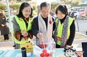 미담타임스 김준완 기자 | 지난 18일, ‘희망2026 나눔캠페인’의 성공적인 추진과 지역 내 나눔문화 확산을 위해 사랑의 열매 군위 나눔봉사단과 함께 군위읍 전통시장 일원에서 거리모금 활동을 펼쳤다. 이번 행사는 연말을 맞아 이웃과 함께하는 따뜻한 나눔의 정을 나누기 위한 것으로, 나눔봉사단원들과 군청 직원들이 참여해 전통시장을 찾은 주민들에게 사랑의 열매 배지를 달아주며 성금 모금 활동을 전개했다. 특히 이날 행사에서는 한 지역 주민이 정성껏 모은 돼지 저금통을 통째로 기부하는 감동적인 모습이 눈길을 끌었다. 현장에 있던 사람들은 박수로 화답하며 훈훈한 분위기를 더했다. 이날 모금된 성금 22,301,300원은 사회복지공동모금회를 통해 군위군 내 복지 사각지대에 놓인 이웃들에게 전달될 예정이다. 김진열 군위군수는 “희망2026 나눔캠페인에 참여해 주신 기관, 단체, 그리고 군민 여러분께 깊이 감사드린다”며 “여러분의 따뜻한 마음이 담긴 성금은 군위군의 저소득층과 소외된 이웃을 위한 복지사업에 소중히 사용될 예정”이라고 전했다.