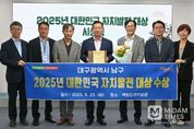 미담타임스 김교환 기자 | 대구 남구는 지난 23일 서울 용산구 백범김구기념관 컨벤션홀에서 열린 '2025 대한민국 자치발전 대상'에서 기초부문 대상을 수상했다. ‘대한민국 자치발전 대상’은 지역 발전을 위해 특색있는 자원을 활용하거나 독창적인 행정 서비스를 펼쳐 혁신적인 성과를 거둔 지방자치단체, 지방의회, 국회의원 등에 수여하는 상이다. 남구는 전국 최초로 ‘인구정책국’을 신설하고 인구종합계획 '무지개프로젝트'를 추진하여 인구감소 위기에 선제적으로 대응했으며, 특히‘신혼부부 대출이자 지원사업’, ‘대구 최초 산후조리비 지원사업’등 생활밀착형 정책을 통해 주민 체감도 높은 성과를 거두었다는 평가를 받았다. 또한 ▲남구 내 주한미군과 학교를 연계한 '글로벌 앞산캠프', ▲직접 체험하는 지방자치 '구정체험학교', ▲주민중심의 지역사회복지 구현 '일사천리 복지기동단', ▲겨울시즌 특화 관광콘텐츠 '크리스마스 축제'를 통한 지역경제 활성화 등 다양한 정책을 추진하여 지방자치 발전에 기여한 공로를 인정받아, 민선 7기에 이어 민선 8기에도 연속 수상하며 구정 성과를 입증했다. 조재구 남구청장은 “이번 수상