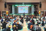 미담타임스 김교환 기자 | 새마을문고부산진구지부(회장 최병욱)는 지난 27일 부산당감초등학교 강당에서 제6회 가족과 함께하는 환경골든벨 대회를 개최했다. 이날 행사는 사전에 공지된 환경 관련 서적을 읽고 학습한 초등학생 자녀와 학무모가 짝을 이뤄 105개 팀이 참여했고, 환경보호와 지구온난화를 주제로 한 퀴즈를 풀며 기후 위기 극복에 다 함께 동참해야 한다는 인식을 갖는 계기가 됐다. 최병욱 회장은“환경오염과 기후위기는 그 어떤 것보다 우리의 일상을 위협하는 문제가 됐다”며 탄소중립 실천을 위해 앞으로도 지속적인 관심과 참여를 당부했다.