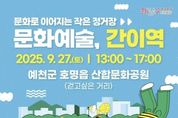 미담타임스 김준완 기자 | (재)예천문화관광재단은 27일, 예천군 호명읍 산합문화공원(걷고싶은 거리)에서 ‘문화예술, 간이역’ 9월 프로그램을 운영한다. 이번 9월 프로그램은 기존의 실내 중심 운영에서 벗어나 야외 무대로 공간을 옮기고 프로그램 구성도 한층 다채롭게 확대해 선보인다. 주요 프로그램으로는 ▲싱어송라이터 현서와 할순이 꾸미는 청춘콘서트, ▲가족 단위 관객을 위한 마술과 버블쇼, ▲환경문제 인식을 높이는 체험형 콘텐츠 ‘리사이클 정류장’, ▲감성을 자극하는 독서 프로그램 ‘북적북적 북크닉’이 준비된다. 또한 전통과 이색 의상을 직접 입어볼 수 있는 ‘내 맘대로 옷장’, 추억을 남길 수 있는 ‘인생네컷 사진관’, 사연을 나누는 ‘마법의 우체통’ 등도 마련돼 다양한 즐길 거리를 선사한다. 특히 이번에는 반려동물과 함께 참여할 수 있는 교감형 프로그램이 새롭게 추가돼, 반려인과 가족 모두가 일상 속에서 위로와 활력을 얻을 수 있는 시간을 마련할 예정이다. 김학동 이사장은 “문화예술, 간이역이 군민 누구에게나 열려 있는 쉼터 같은 프로그램이 되길 바란다”며, “앞으로도 다양한 세대가