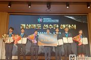 미담타임스 김준완 기자 | 제60회 전국기능경기대회에서 종합우승의 영광을 차지한 경상북도는 지난 10월 27일 안동 스탠포드호텔에서 선수단 해단식을 가졌다. 이날 행사에는 이재훈 경상북도 경제통상국장, 이윤화 경상북도교육청 교육국장, 이철민 한국산업인력공단 경북지사장, 김영호 경상북도기능경기 위원회 기술위원장, 박종병 (사)대한민국명장회 대경지회장을 비롯해 입상선수 및 지도교사, 학교장 등 관계자 220여명이 참석했다. 해단식은 대회경과 보고, 입상선수 및 지도교사 유공자 등 시상, 개회사 및 축사 등의 순서로 진행됐다. 올해 전국대회는 광주광역시 김대중컨벤션센터 등 6개 경기장에서 진행됐으며, 산업용드론제어 등 51개 직종에 전국 1,725명의 선수가 참가했다. 경북선수단은 45개 직종에 137명이 참가해 뛰어난 기량을 선보이며 82개의 메달(금7 , 은17.5 , 동12.5 , 우수14 , 장려31)을 대거 획득해 전년도에 이어 전국에서 가장 우수한 성적을 거두는 쾌거를 이루었다. 또한, 우수 선수 육성기관에 주어지는 단체표창에 구미전자공업고등학교가 은탑을, 금오공업고등학교는 동탑