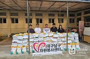 미담타임스 김교환 기자 | 대구 남구는 지난 18일, (주)비앤지평화상사(대표이사 남상식)가 남구자원봉사센터에 추석 명절을 맞아 지역 취약계층을 위해 10kg 쌀 358포(1,000만원 상당)를 후원했다고 밝혔다. ㈜비앤지평화상사는 매년 명절마다 지역 내 소외된 이웃을 위해 꾸준히 쌀을 후원하며 이웃 사랑을 실천해왔다. 특히 올해는 경기 침체와 전반적인 후원 감소 속에서도 변함없는 온정을 이어가 주위에 귀감이 되고 있다. 또한 평화상사는 매장 앞에서 폐지를 줍는 어르신들을 보면 직접 쌀을 나누어드리고, 다시 찾아오면 또 챙겨드리는 등 일상에서도 따뜻한 나눔을 이어가며 지역사회에 잔잔한 감동을 전하고 있다. 남상식 대표이사는 “경제적으로 힘든 시기일수록 더 많은 이웃들이 따뜻한 밥 한 끼를 함께할 수 있기를 바라는 마음으로 준비했다.”라며, “앞으로도 지역과 함께하는 기업으로서 나눔을 이어가겠다.”라고 전했다. 조재구 남구청장은 “매년 명절마다 변함없이 이웃사랑을 실천해 주시는 (주)비앤지평화상사와 남상식 대표이사님께 깊이 감사드린다.”라며, “따뜻한 나눔이 모여 지역사회의 희망이 되고 있다.”라고