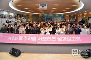 미담타임스 김준완 기자 | 울산 울주군이 26일 군청 문수홀에서 ‘제1회 울주키움 서포터즈 성과보고회’를 개최했다. 이번 행사는 울주키움 서포터즈의 지난 1년간 활동 성과를 공유하고 격려하기 위해 마련됐다. 제1회 울주키움 서포터즈는 총 10개 팀으로 구성됐으며, 지난해 발대 이후 출산·보육·아동 돌봄 정책 홍보에 적극적으로 참여해왔다. 이날 보고회는 성과보고 영상 상영을 시작으로 유공자 표창, 다둥이 명예단원 위촉, 서포터즈 활동 소감 발표, 축하공연 등 다양한 프로그램으로 진행됐다. 울주군은 지역 내 다자녀 가정의 육아 노고를 응원하고 출산장려 문화를 확산하기 위해 김민·박아로미 가족을 서포터즈 명예단원으로 위촉하고 위촉장을 전수했다. 또한 한 해 저출생 극복을 위한 홍보 및 캠페인 활동에 앞장선 서포터즈 6명에게 표창을 수여했으며, 활동 소감 발표와 함께 홍보 경험을 공유해 큰 공감을 얻었다. 이밖에도 미라클앙상블의 축하공연과 울주군 출산장려 정책 퀴즈가 진행돼 더욱 풍성한 행사를 만들었다. 이순걸 군수는 “울주키움 서포터즈의 한 해 활동이 울주군의 저출생