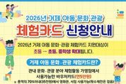 미담타임스 김교환 기자 | 거제시는 다양한 연령대 아동에게 체험 기회를 제공하기 위해 ‘거제 아동 문화·관광 체험카드’ 지원 대상을 확대 시행한다고 밝혔다. 이에 따라 2026년부터 거제 아동 문화·관광 체험카드 지원 대상이 기존 초등학생에서 초·중학생까지 확대되며, 이를 통해 다양한 연령대 아동에게 폭넓은 체험 기회를 제공하고 건강한 성장 환경을 조성할 것으로 기대된다. 본 사업은 관내 초·중학생에게 1인당 연 5만 원의 바우처(포인트 충전) 카드를 지원하여 문화·관광분야의 다양한 체험활동을 경험할 수 있도록 하는 사업이다. 2026년 지원대상은 거제시에 주민등록을 둔 초·중학생 및 그 나이에 상응하는 아동(2011~2019년생)이며, 사업 시행 기간은 2026년 3월 15일부터 12월 15일까지이다. 또한, 2025년 지원받은 아동 중 타 시군으로 전출하지 않은 아동은 별도 신청 없이 기존 카드에 5만원 재충전된다. 체험카드 신규·재발급 신청, 가맹점 신청 및 조회 등 세부 사항은 거제시청 홈페이지를 통해 확인할 수 있으며, 사업 시행 전 학교 및 관련 기관 안내, 현수막 게시, 전