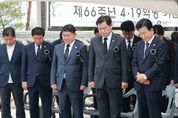 미담타임스 정인화 기자 | “김주열 열사를 비롯한 수많은 선열의 희생이 오늘의 민주주의를 만들었음을 잊지 말아야 합니다.” 김관영 전북특별자치도지사는 19일 남원시 김주열 열사 추모공원에서 열린 제66주년 4·19혁명 기념식에 참석해 민주영령을 추모하고, 4·19 정신 계승 의지를 다졌다. 이날 행사는 정동영 통일부 장관과 박희승 국회의원, 최경식 남원시장, 이영노 남원 김주열 열사 기념사업회장, 도민 등 300여 명이 참석한 가운데 민주주의 발전의 의지를 다졌다. 기념식은 국민의례에 이어 김주열 열사 약력 소개, 기념사, 추도사, 남원시립국악단의 기념 공연, 4·19의 노래 제창, 묘역 참배 순으로 진행됐다. 특히 4·19혁명희생유족과 보훈단체 회원, 학생 등 다양한 세대가 한자리에 모여 민주주의의 소중함을 되새겼다. 김 지사는 추도사에서 “4·19혁명은 단순한 정권 교체를 넘어선 위대한 승리의 역사”라며 “평범한 시민의 힘으로 절대 권력을 무너뜨린 시민혁명의 전형이자 대한민국 민주주의의 초석을 다진 역사적 전환점”이라고 강조했다. 이어 “1960년 2월 28일 대구에서 피어오른 민주의 불꽃이 3